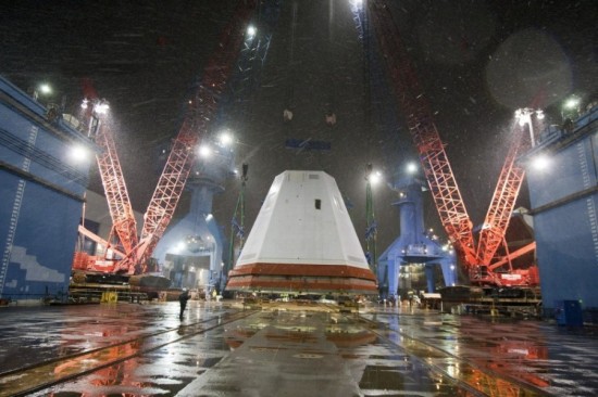 【延伸阅读】美军最新科幻战舰在风雪中安装舰桥