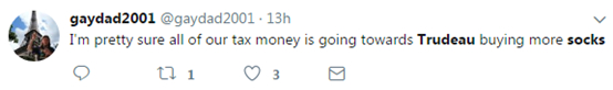 我敢说我们纳税人交的钱都被特鲁多拿去买袜子了。