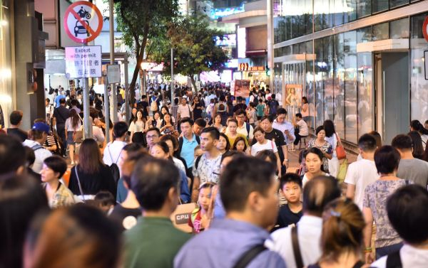 10月3日,在香港铜锣湾商业区,游客络绎不绝。 新华社发(王玺 摄)