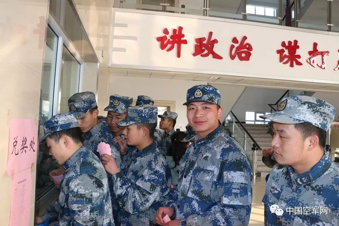 官兵喜滋滋地用奖券兑换礼品。