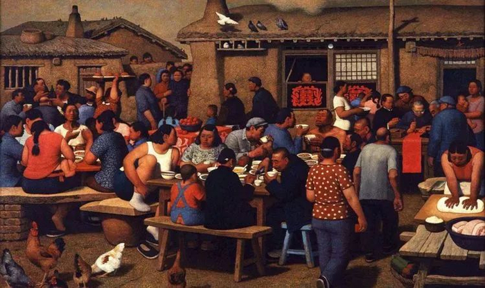 在村庄里最流行也最有意思的是情歌,小伙若看见心爱的姑娘在对面山上,就用歌声表达对姑娘的爱,便大声地唱道:“三天没见你的面,肚子里的疙瘩成了蛋!”这时,如果那边的姑娘听见了,明白歌中的含义,也用山歌表达自己的心思,便唱道:“多次上山不见哥,急得小妹眉生火!”多么形象、生动的描述啊!其语言,毫无造作之感,直指生命的本真;其情感,火辣、真挚,回肠荡气,如烈酒般醉人。 若谁家女儿出嫁时,也要唱哭嫁:“一周两面岁抱手上,白天夜晚不离娘,若是女儿性情犟,不拿糕点就拿糖……”这时,在场的人们似乎都被这早已听熟了的歌声感动了,一边帮着办酒席,一边劝姑娘别哭了,因为“男大当婚,女大当嫁嘛!” 我时常从那听不清唱词的声乐中,感受到这时的唱声有着特别的亲切,蕴含着山里人特有的真情和善良,村庄因此多了几许缠绵而厚重。五