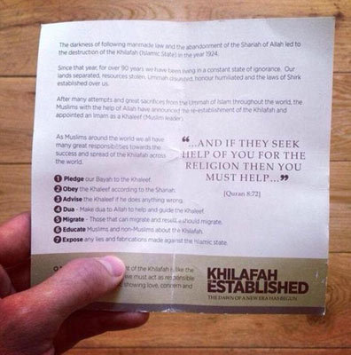 ISIS支持者伦敦发传单 鼓动民众定居“伊斯兰国”