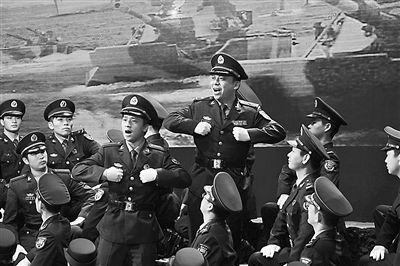 这只是总政文艺单位推广传唱强军战歌的一组镜头。从去年底到目前,在白山黑水、林海雪原、兴安山麓,在长城脚下、南国之滨、渤海湾畔,座座军营都在上演这样的动人画面。总政歌舞团、歌剧团等总政文艺单位在本系统唱响强军战歌的同时,每个单位都组建了60到120人不等的强军战歌合唱队,几乎人人能熟练演唱20首。在此基础上,他们组成最强阵容深入开展为兵服务活动。德艺双馨的名人名家、梅花奖得主、电视歌手大赛的获奖者等官兵喜爱的明星,几乎都出现在为兵服务的名单上。他们上高山、下海岛,进深山、登哨所,足迹遍及大江南北。不管是单位集体演出,还是小分队演出,在为兵服务演出中,《强军战歌》是他们每次的必唱曲目、压轴曲目。