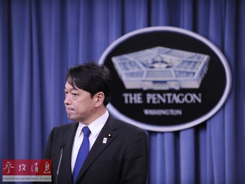 资料图片:日本防卫大臣小野寺五典出席新闻发布会。