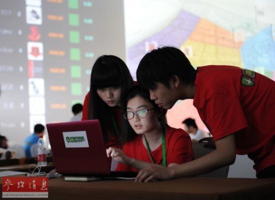 “黑客大赛”参赛队选手在商讨系统攻防对策。(资料图)