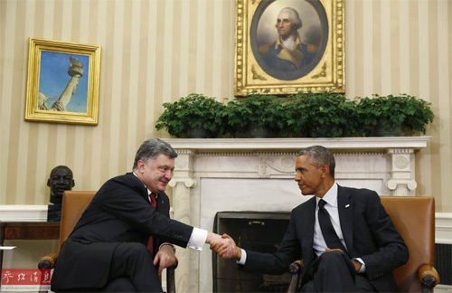 波罗申科18日结束了对美国的工作访问,访问期间他与奥巴马总统举行了会谈。奥巴马在白宫会见波罗申科后表示,美国将向乌克兰提供新一批4600万美元援助。但与此同时,奥巴马没有提及任何向乌克兰供应武器之事。