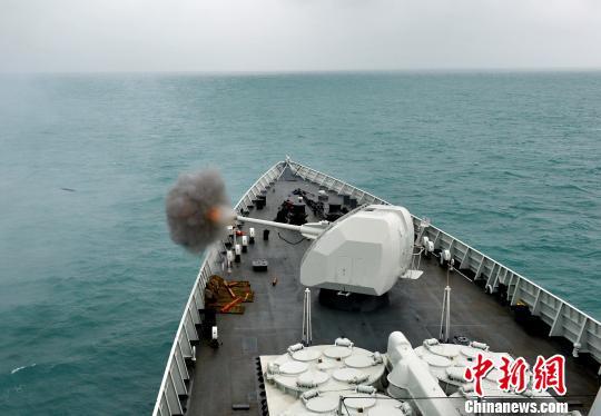 【延伸阅读】海口舰被誉“中华神盾”:组建10年战斗力不断提升 海口舰在恶劣海况下进行主炮射击训练。 高毅 摄