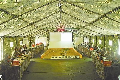 下图:该团利用某新型信息化指挥系统进行指挥所演练。展云飞摄