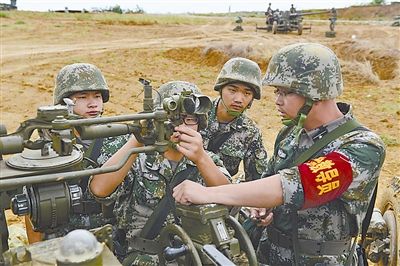 四川某预备役高炮团着眼信息化条件下的实战训练,部队“走、打、吃、住、藏”的能力快速提升。图为9月16日,该团在接受全国民兵预备役高炮队伍竞赛性考核战术演练中,操炮手们认真校准火炮。