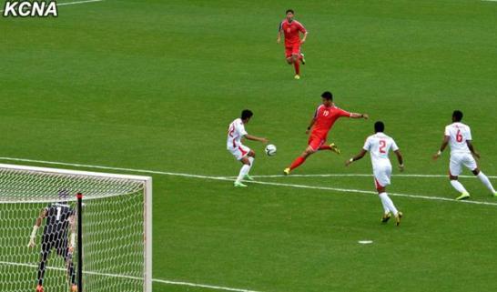 朝鲜队与阿联酋队男足在亚运会进行四分之一比赛。