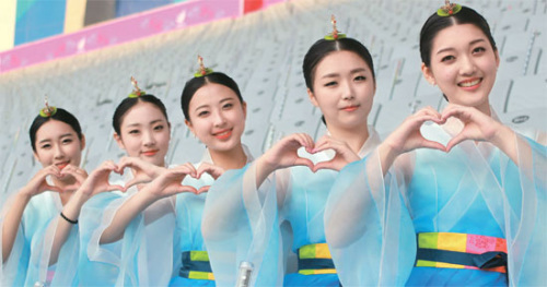 韩国仁川亚运会上共有224名颁奖礼仪小姐,她们穿着天蓝色的改良韩服,因此被网民们称为“仙女”。