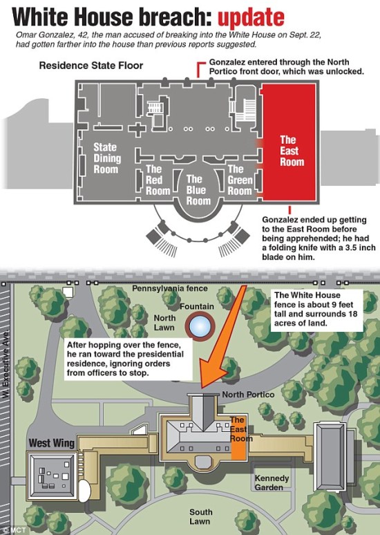9月19日晚,42岁的退伍士兵冈萨雷斯翻越白宫围栏后,横穿草坪并闯进建筑内部,随后被安保特工制服。虽然美国总统奥巴马和家人恰巧在事发前几分钟外出度假,事件最终有惊无险,但还是引来美国各界对白宫安保漏洞的批评。