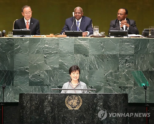 【延伸阅读】韩总统朴槿惠联大演讲 呼吁实现朝鲜半岛统一24日,韩国总统朴槿惠出席联合国大会并发表主旨演讲。(韩联社)