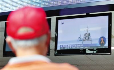 ??? 7日,朝韩巡逻艇在朝鲜半岛西部海域“北方界线”附近短暂交火,无人员伤亡报道。图为韩国民众收看相关新闻报道。