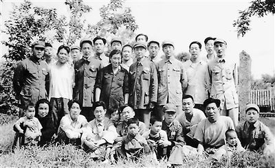上图为军委后勤部机关人员合影:中排左1为部长杨立三,前排左3为参谋钟绍臣、左4为参谋李舟。