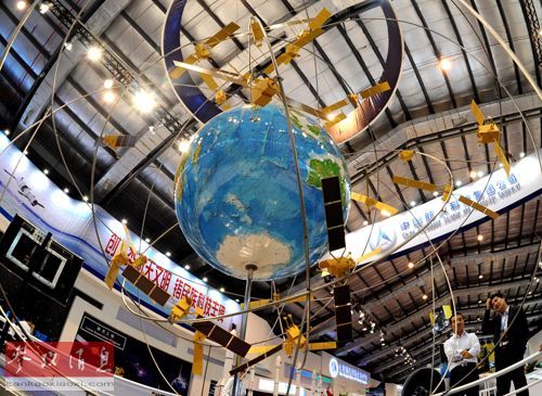 资料图片:2012年11月14日, 北斗导航系统规划模型亮相珠海航展,北斗全球卫星导航系统由我国自主研制,计划由30颗卫星组成,目前已成功发射16颗。该系统具有星间链路和自主导航功能,预计于2020年完成全球系统组建任务。新华社记者 梁旭 摄