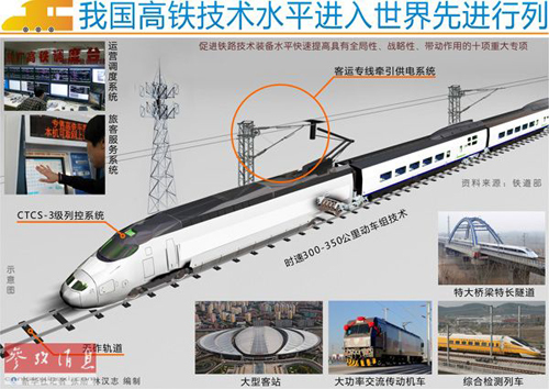 图表:我国高铁技术水平进入世界先进行列。 新华社记者 张勋 林汉志 编制