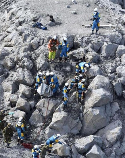 【延伸阅读】日本火山搜救队新发现多具登山者遗体 碎石救人日本救援队在岩石堆中发现多名登山者遗体。