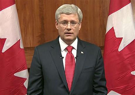 22日,加拿大总理哈珀就枪击案发表电视讲话。