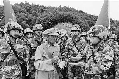 图片 军报记者 2014.10.2703:19 关注 近日,南京军区驻闽某部组织党员骨干以武装拉练形式来到古田会议会址、才溪乡烈士纪念碑等地开展现地党日活动,追忆烽火岁月,接受精神洗礼。图为红军后人黄运通正在讲述红军事迹,与官兵开展交流。姚安泉 摄