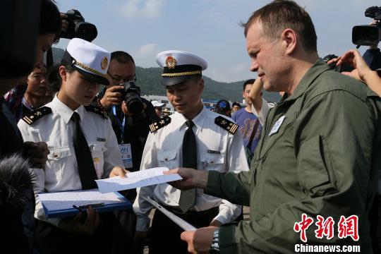 中新网珠海11月5日电 (邓媛雯 陈彦儒)伴随着发动机强劲的轰鸣声,5日下午2点25分,一架银灰色的苏-35战斗机缓缓驶入珠海机场临时口岸。