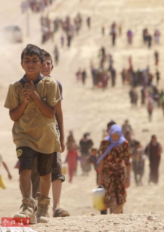 资料图片:数万伊拉克难民前往叙利亚边境,躲避“伊斯兰国”极端组织的攻击。新华社路透
