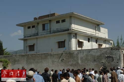 人们在被击毙的恐怖大亨本·拉丹住所外观看。(资料图片)