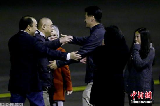 当地时间2014年11月8日,美国华盛顿,被朝鲜释放的美国人裴俊浩和马修·米勒抵达美国,与家人团聚。美国政府8日证实,朝鲜已释放所扣押的最后两名美国人,并对此举表示欢迎。