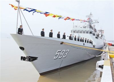 三门峡舰是我国自行设计的某新型导弹护卫舰首舰,隶属于海军东海舰队某水警区,舷号593。该舰在火力配置、指挥控制、系统作战等方面,均采用目前国内最先进的技术和装备,具有较强的综合作战能力。