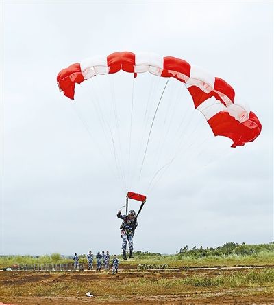 11月8日,海军某陆战旅组织特战队员进行直升机低空伞降训练,提高部队复杂条件下作战能力。图为该旅组织官兵在恶劣条件下进行伞降训练。 廖志勇 摄
