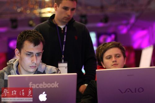 资料图片:在罗马尼亚首都布加勒斯特举行的黑客公开赛上,参赛选手聚精会神地操作电脑。