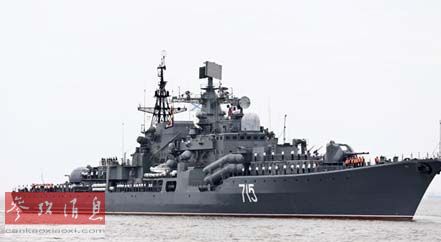 资料图片:俄罗斯“快速”号驱逐舰驶抵上海,准备参加中俄联合军演。