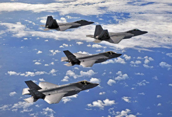 资料图:美军首次同时出动F-35和F-22参加演习。(图片源于网络)