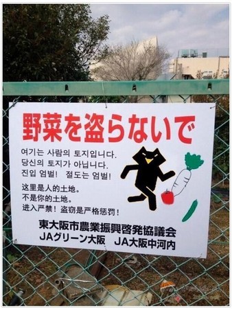 日农场设中文告示警告小偷 网友:"小日本"中文太怪