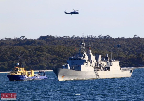 9月29日,在澳大利亚杰维斯湾,澳大利亚海军出动S70直升机担负空中摄像任务。新华社记者查春明摄