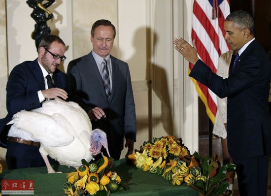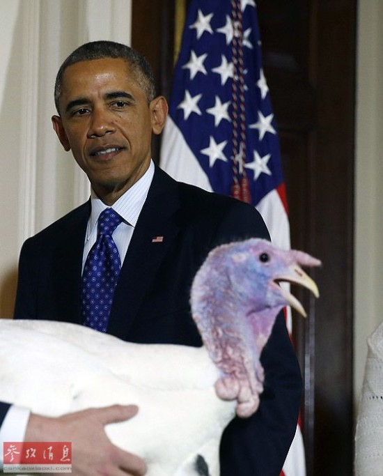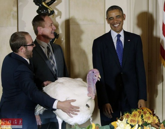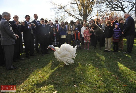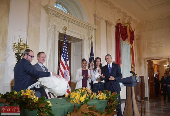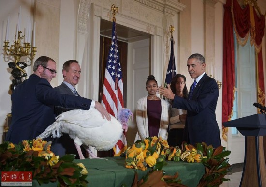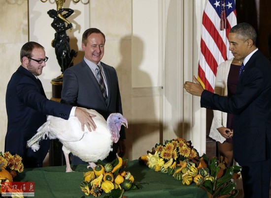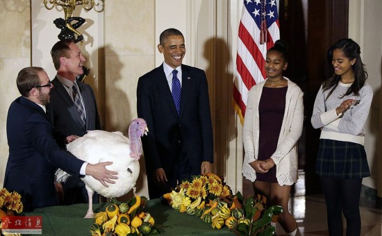 外媒:感恩节前夕 奥巴马在白宫赦免火鸡(图)