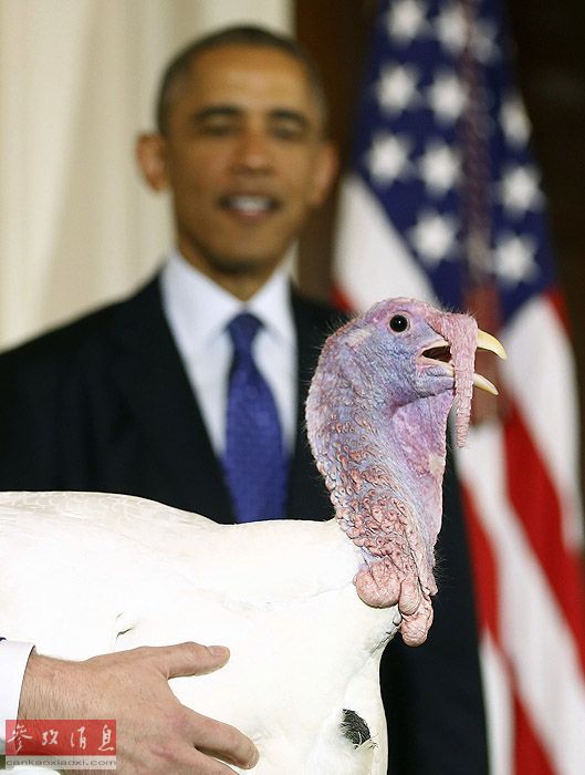 中新网11月27日电 综合报道,11月第四个星期四是美国一年一度的感恩节。作为美国人最重要的节日之一,感恩节是全家团圆、共享大餐的好日子。今年,美国总统奥巴马按照惯例特赦一只名叫“奶酪”的火鸡。