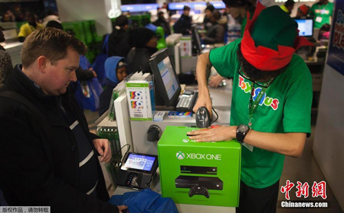 当地时间2013年11月28日,美国纽约,民众在时代广场上的玩具反斗城中购物。据悉,感恩节当天,民众纷纷涌入各大商场和超市购物,提前开始血拼“黑色星期五”。
