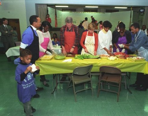 1993年,克林顿总统与夫人希拉里在白宫准备感恩节大餐。