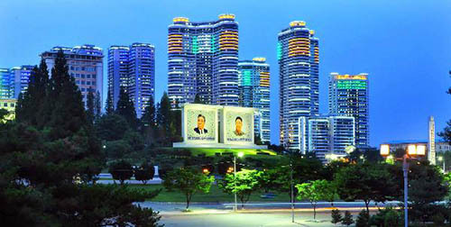 平壤市内的公寓夜景(图片来源于《劳动新闻》)