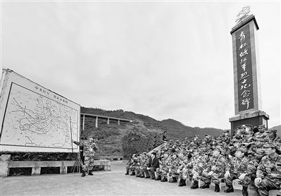 图为国防大学党员干部在青杠坡战斗遗址听党课。杨俊光摄