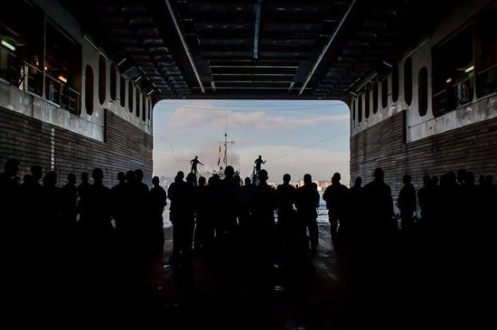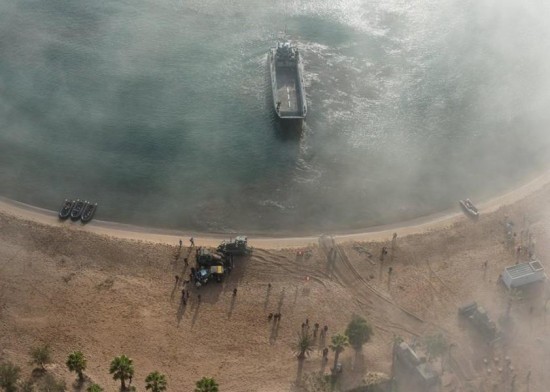 登陆舰放出登陆艇。