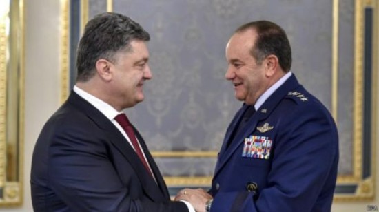 正在访问乌克兰的布里德拉夫将军(右)警告俄国可能控制黑海。
