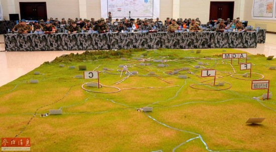 在内蒙古朱日和训练基地,“和平使命—2014”联合反恐军事演习总导演部指挥员进行战役筹划演练(8月27日摄)。新华社记者 张领 摄?