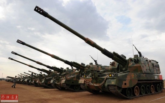 这是在内蒙古朱日和训练基地参加“和平使命—2014”联合反恐军事演习的陆军战斗群中方155自行榴弹炮(8月26日摄)。新华社记者 张领 摄