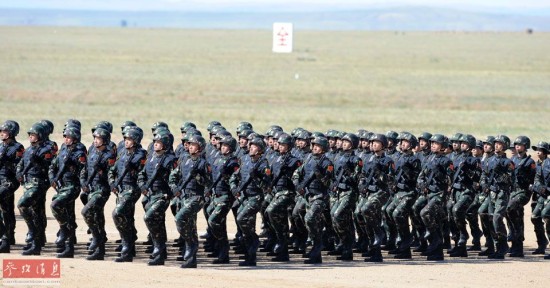 在内蒙古朱日和训练基地,参加“和平使命—2014”联合反恐军事演习的中国人民解放军第38集团军特战官兵在战役协同训练中整装待发(8月24日摄)。新华社记者 张领 摄