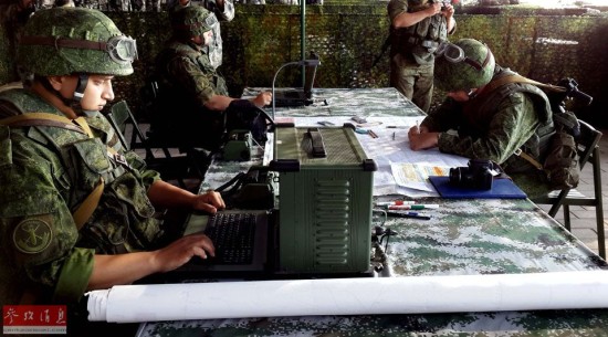 在内蒙古朱日和训练基地,参加“和平使命—2014”联合反恐军事演习的俄罗斯官兵在战役协同训练中(8月26日摄)。新华社记者 张领 摄