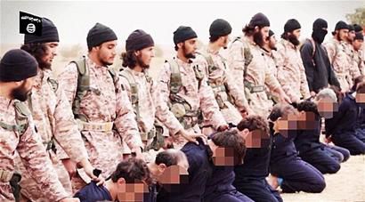 资料图片:“伊斯兰国”公布斩首18人的视频,疑似出现英国和法国公民(图片源于网络)