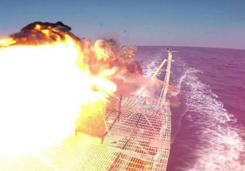 在视频中,激光武器被用来打击包括快艇、无人驾驶飞行器、无人机等测试目标。快艇在被激光武器击中后爆炸起火。