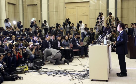 12月19日,日本东京都知事猪濑直树在东京出席记者会,宣布因收受医疗企业“德洲会”集团5000万日元(约合48万美元)一事引咎辞职。东京都前知事石原慎太郎辞职后,猪濑直树2012年底当选东京都知事,被认为是石原慎太郎的指定接班人。新的东京都知事选举将于明年1月公示,2月举行投票。新华社/路透